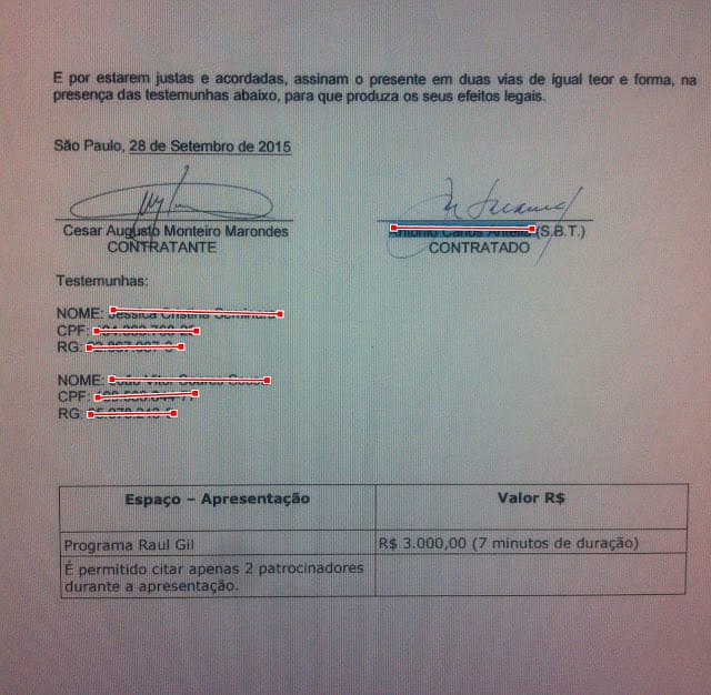 Na época, nós tivemos acesso ao contrato que ele assinava, garantindo que sua “vítima”, teria direito ao combinado, mas claro, nada do que ele prometia era cumprido.