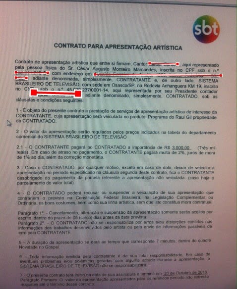 O documento seria uma contratação para integrar o casting da gravadora, fato que obviamente nunca aconteceu, e a pessoa ficou no prejuízo.