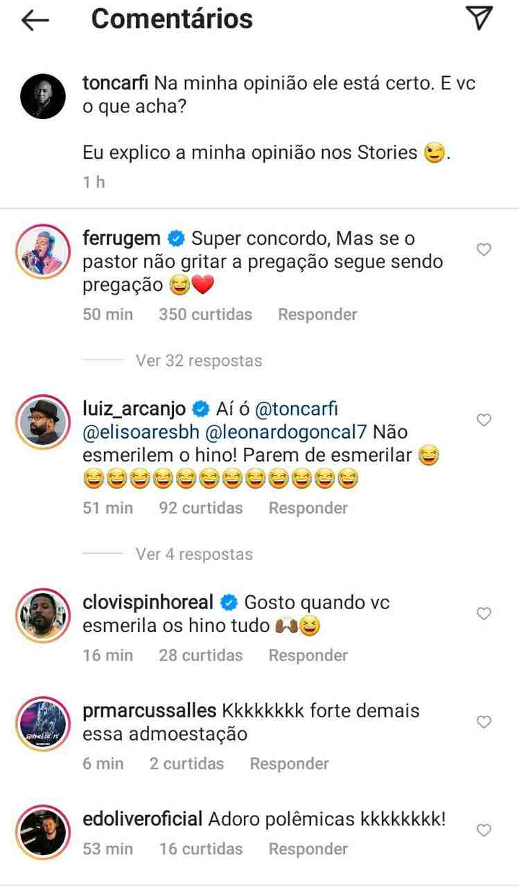 Apesar de Ton Carfi ter compreendido a fala do pastor, alguns cantores gospel, e também seculares, criticaram a fala do religioso no post do cantor, o que causou uma polêmica que dividiu a opinião de todos.