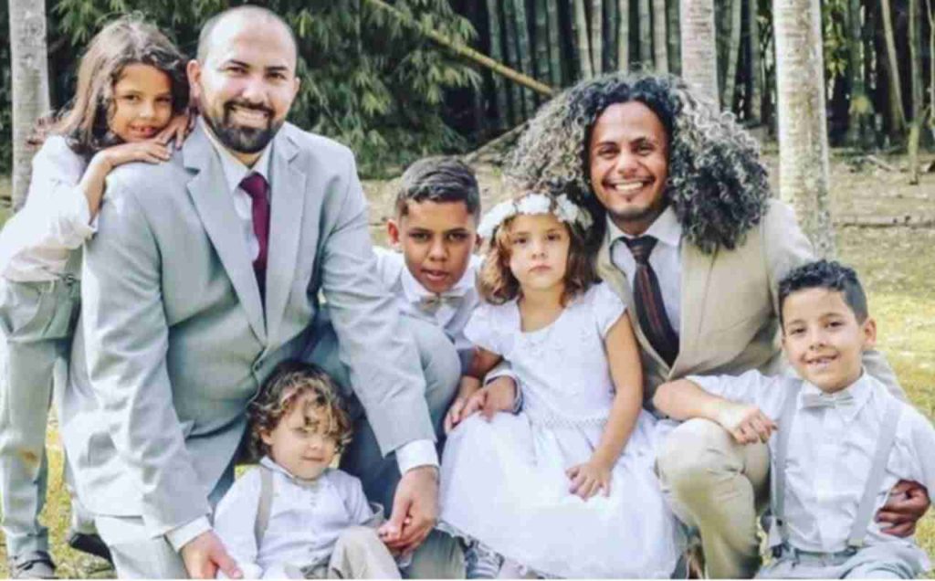O casal homoafetivo Jhonatan Wiliantan da Silva e Daniel Rocha Braz, de Rio Claro, no interior de São Paulo, realizaram o sonho de batizar os cinco filhos no domingo, 21 de agosto.
