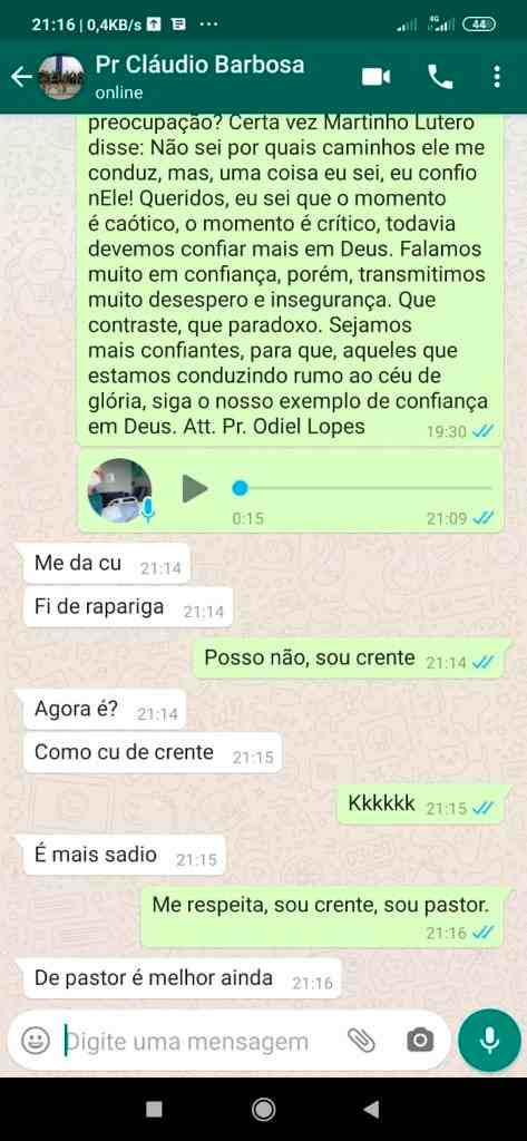 Em outros prints, no que parece ser uma conversa privada entre dois pastores, um deles pede o c# do outro.