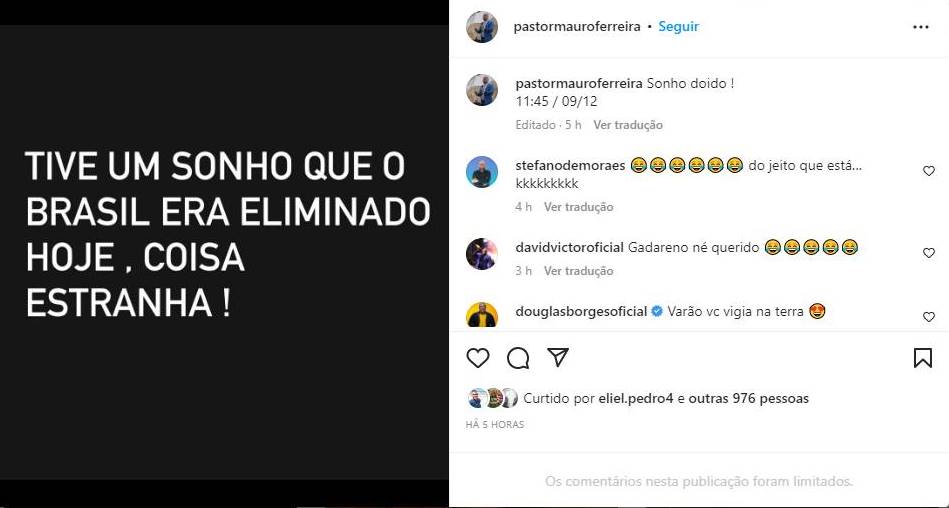 No post, o pregador diz que sonhou que o Brasil perdia o jogo e era eliminada do campeonato. Muitos seguidores brincaram com a publicação, achando que seria quase que impossível de acontecer, no entanto, a seleção brasileira acabou perdendo nos pênatis.