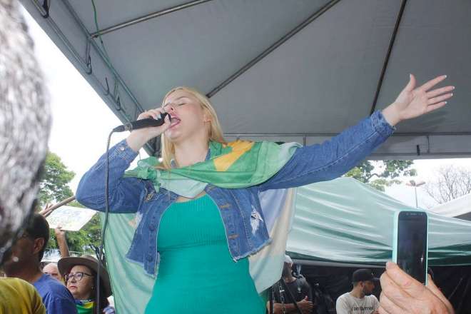 A cantora gospel Fernanda Ôliver, que ficou conhecida como a musa das manifestações golpistas bolsonaristas, que aconteceram neste domingo (08/01), ganhou destaque entre os acampantes que ficaram na porta do Quartel General do Exército em Brasília.