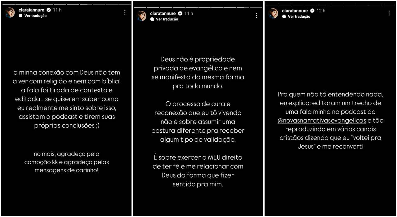 Na tarde desta quarta-feira (8), a ex-cantora gospel Clara Tannure usou seu perfil no Instagram para fazer um esclarecimento sobre algo que foi amplamente divulgado nas redes sociais nos últimos dias.