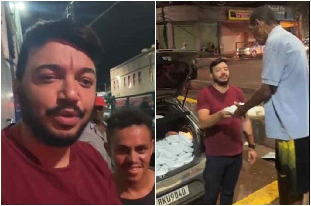 Com a ajuda de alguns obreiros, Flávio distribuiu 150 marmitas para alimentar pessoas em situação de vulnerabilidade naquela região.