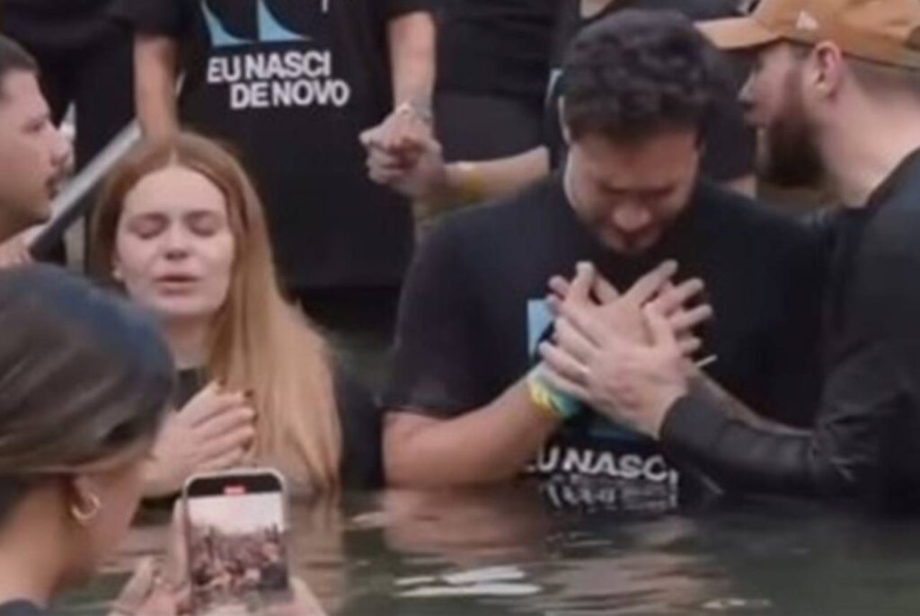 Neste domingo (16), Viih Tube e Eliezer compartilharam registros do batismo em que participaram. A cerimônia foi realizada pela Lagoinha Alphaville, liderada pelo pastor André Fernandes, que batizou o casal.