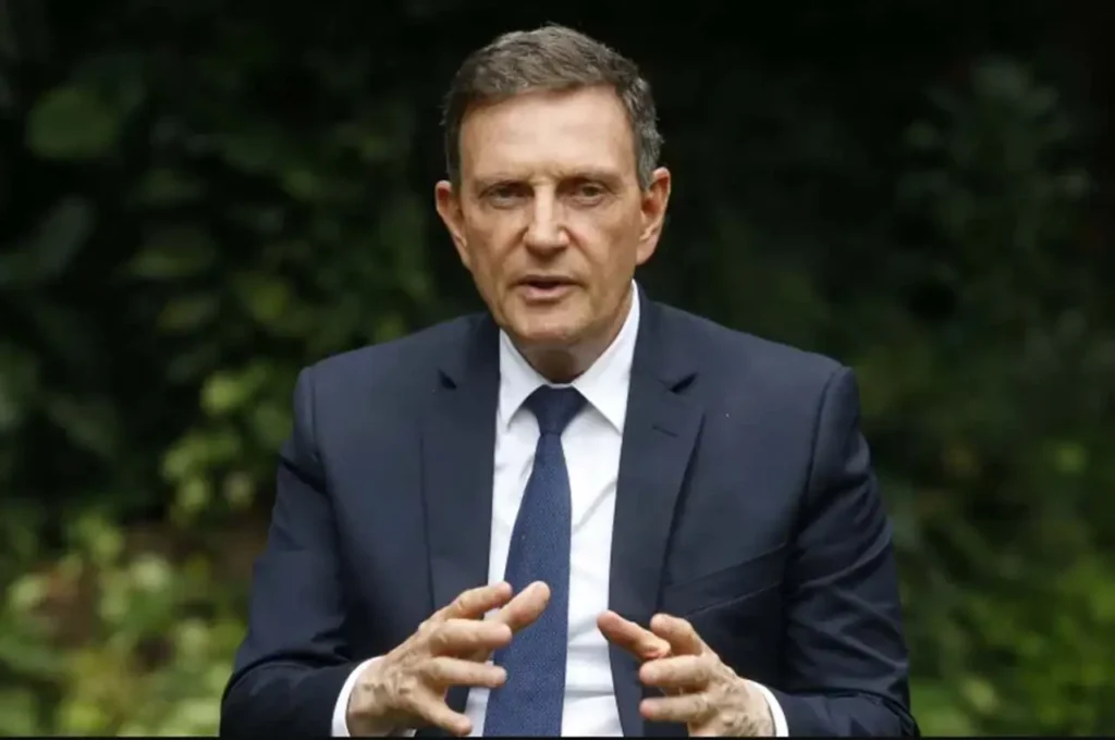 Diante de cerca de 15 parlamentares, o ex-prefeito do Rio de Janeiro apresentou o refrão — “Batom na estátua não apaga a esperança” — e mencionou personagens que se tornaram símbolos do movimento, como “Débora do Batom”, um vendedor de algodão-doce e uma idosa com a Bíblia na mão.